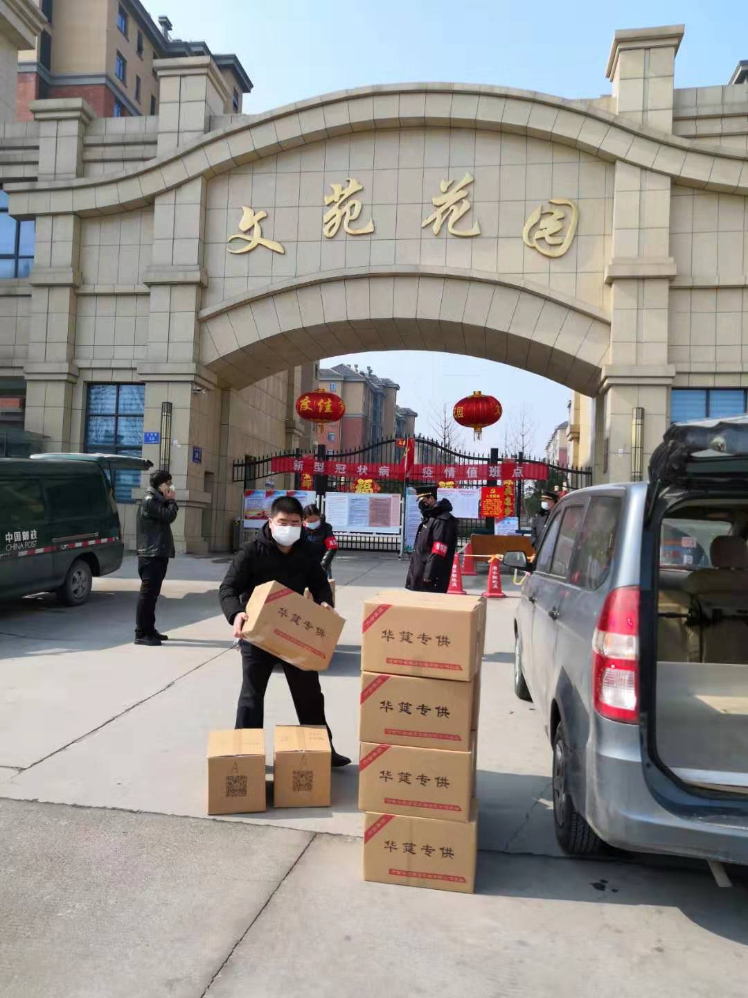 酒店事業(yè)部總裁王邵靜迅速組建蔬菜采購(gòu)組,華筵酒店副總經(jīng)理張存哲、豫味廚副總經(jīng)理王虎、采供部經(jīng)理李銀成天未亮就驅(qū)車前往采購(gòu)新鮮食材,為業(yè)主的食品安全與健康把好第一關(guān)。在將精心挑選的蔬菜采購(gòu)?fù)瓿蛇\(yùn)達(dá)華筵酒店后,王邵靜總帶領(lǐng)財(cái)務(wù)部經(jīng)理陳廣慧、安保主管李乃超按照裝箱需求快速整理、過稱、裝箱一氣呵成。為保障安全,減少中間流通接觸,所有人員在進(jìn)行蔬菜分裝時(shí)都帶好手套、口罩,做好防護(hù)。