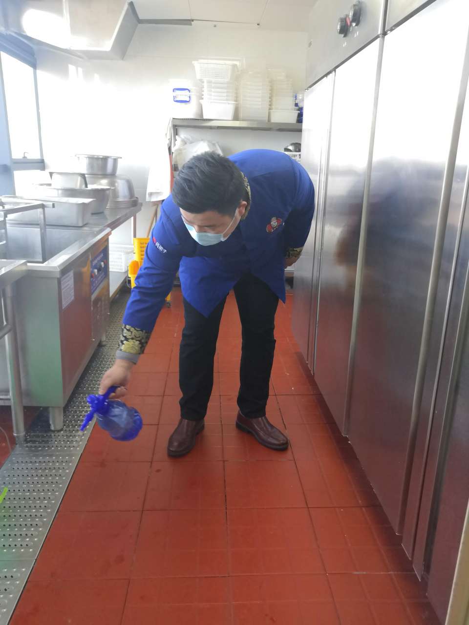 在疫情防控還未解除的情況下,豫味廚餐飲公司為了確保員工及顧客的安全,加強了對于餐廳的現(xiàn)場防控消毒。正式開餐的前一天,在豫味廚副總經(jīng)理王虎的帶領及協(xié)調(diào)安排下,員工們提前到崗,對于餐廳內(nèi)部展開全面細致的清潔消毒。在正式開餐的過程中對于食品采購、加工制作、供餐服務等嚴格把控,所有人員在提供服務時均佩戴帽子、口罩、手套;餐具用品等按不同用途分類放置,使用后高溫消毒,餐廳每日至少消毒兩次,就餐結束后,會對就餐區(qū)的餐桌、椅子等進行全方位的消毒。