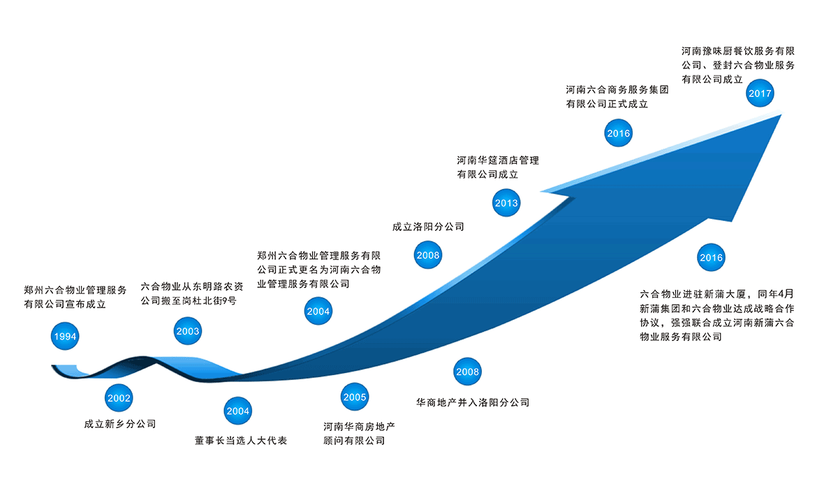 河南六合商務(wù)服務(wù)集團有限公司簡稱“河南六合集團”,源自于鄭州六合物業(yè),創(chuàng)立于一九九四年。六合集團秉承“取之于社會,服務(wù)于社會,同創(chuàng)社會進步”的服務(wù)宗旨,歷經(jīng)二十余年變革發(fā)展,累積了豐富的市場競爭、品質(zhì)管理及團隊建設(shè)經(jīng)驗,先后開展了“物業(yè)管理服務(wù)”、“物業(yè)資產(chǎn)經(jīng)營”、“酒店運營管理”及“餐飲運營服務(wù)”等業(yè)務(wù)。六合集團立足于鄭州本土發(fā)展,并向周邊城市輻射,目前在鄭州,洛陽,新鄉(xiāng),林州,禹州等地有多家下屬公司和加盟合作公司,包括: 河南六合物業(yè)管理服務(wù)有限公司、河南華筵酒店管理有限公司、河南六合物業(yè)管理服務(wù)有限公司洛陽分公司、新鄉(xiāng)六合物業(yè)管理服務(wù)有限公司、河南新蒲六合物業(yè)服務(wù)有限公司、河南華諾安物業(yè)服務(wù)有限公司、河南豫味廚餐飲服務(wù)有限公司、河南豫豐物全商貿(mào)有限公司。